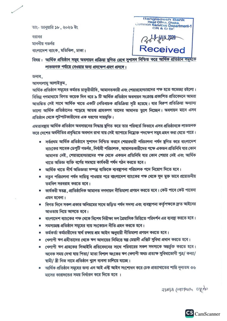 আবেদনকারীরা আশা প্রকাশ করেন, এই কঠোর পদক্ষেপগুলো গ্রহণ করলে আমানতকারী ও কর্মীদের স্বার্থ রক্ষা পাবে এবং আর্থিক খাত পুনরায় ঘুরে দাঁড়াবে।